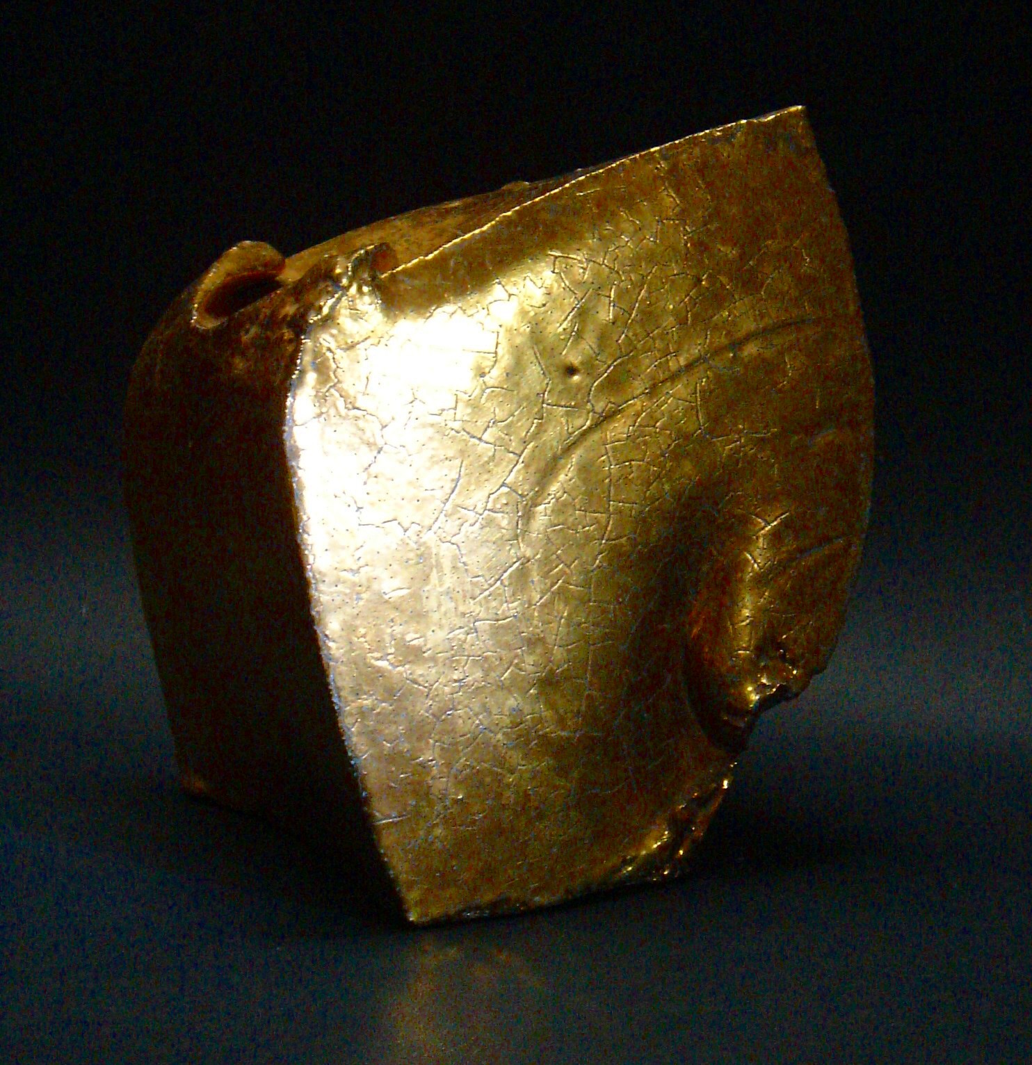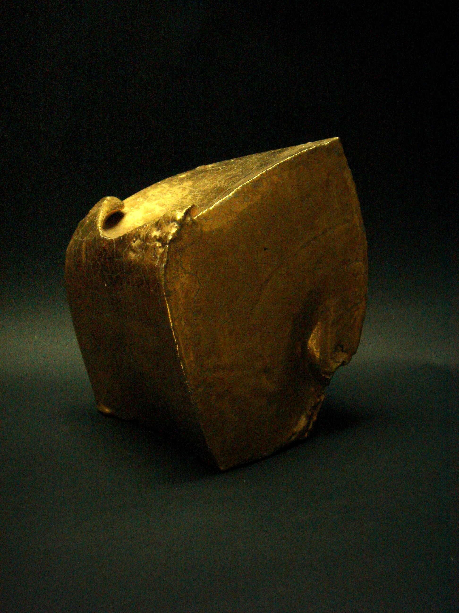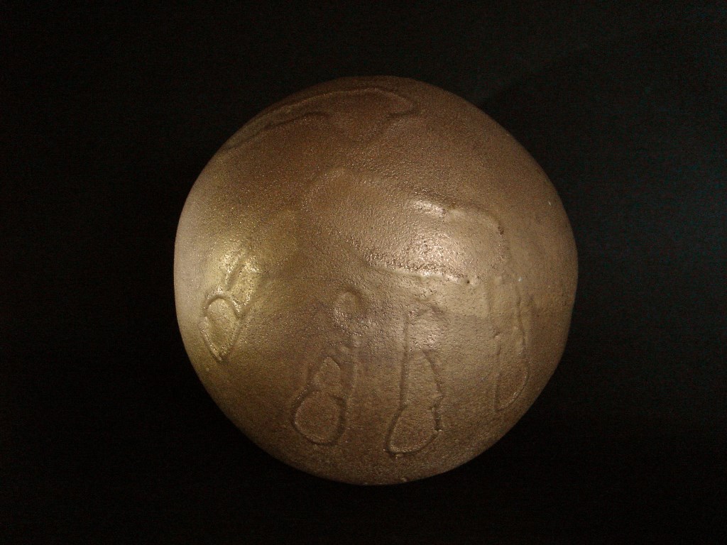 Scultura a forma di sfera dorata, rirpoducente un' impronta