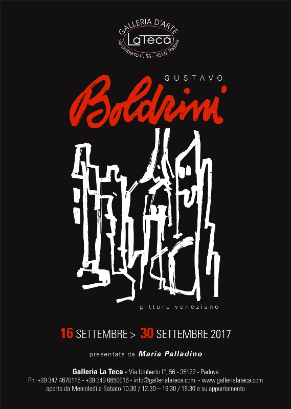 Sabato 16 settembre alle ore 18,00, presso la Galleria La Teca di Padova, via Umberto I, 56, si inaugurerà la mostra retrospettiva “Gustavo Boldrini, pittore veneziano”.
